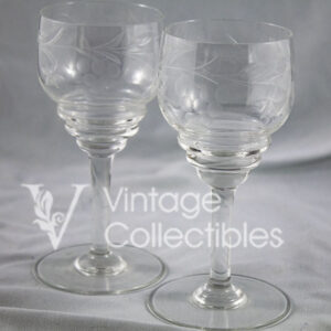 1960s 2 Port and Shot/Sipping Etched Glasses, Grape Fruit & Leaf Etching
